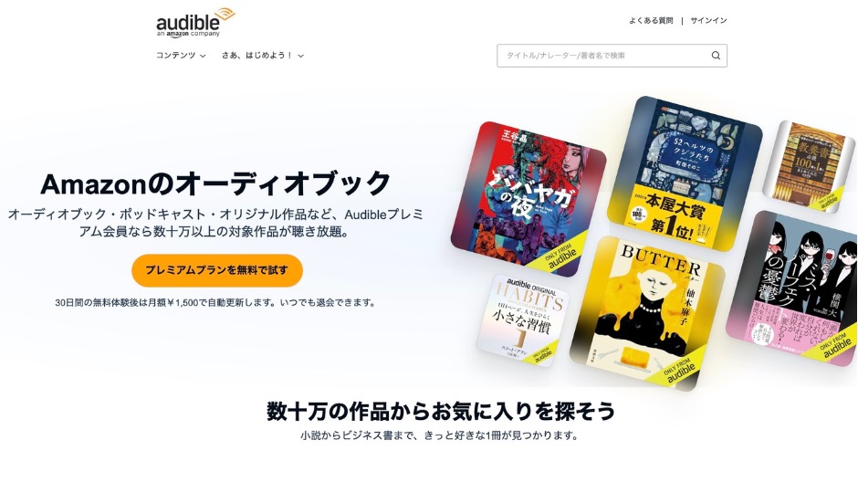Amazonオーディブルには、たくさんの作品が用意されています。