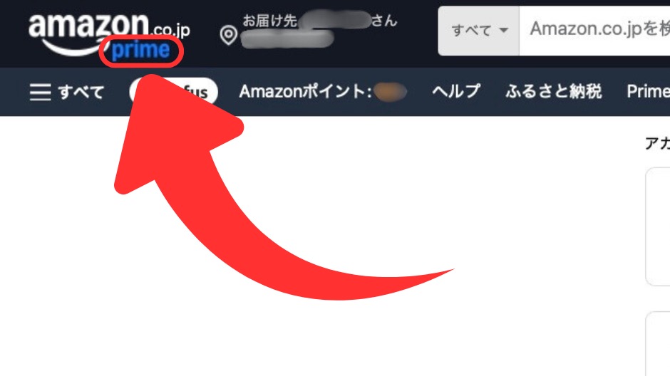 - Amazonのサイト上部にある「プライム」のページに移動します。